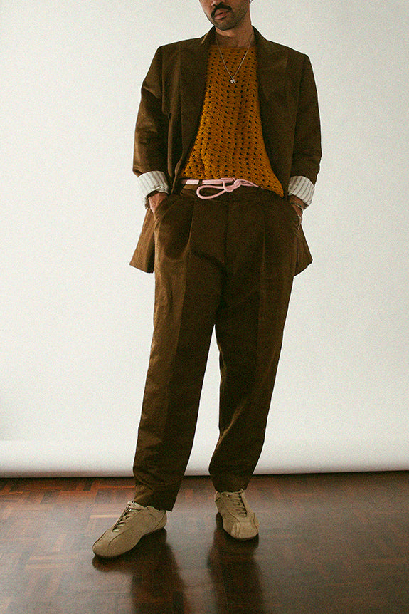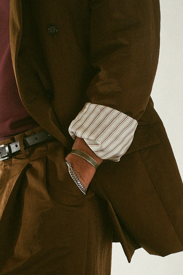 Blazer com trespasse duplo. Silhueta a direito com gola clássica e pé de gola. Ombros estruturados com ombreiras.