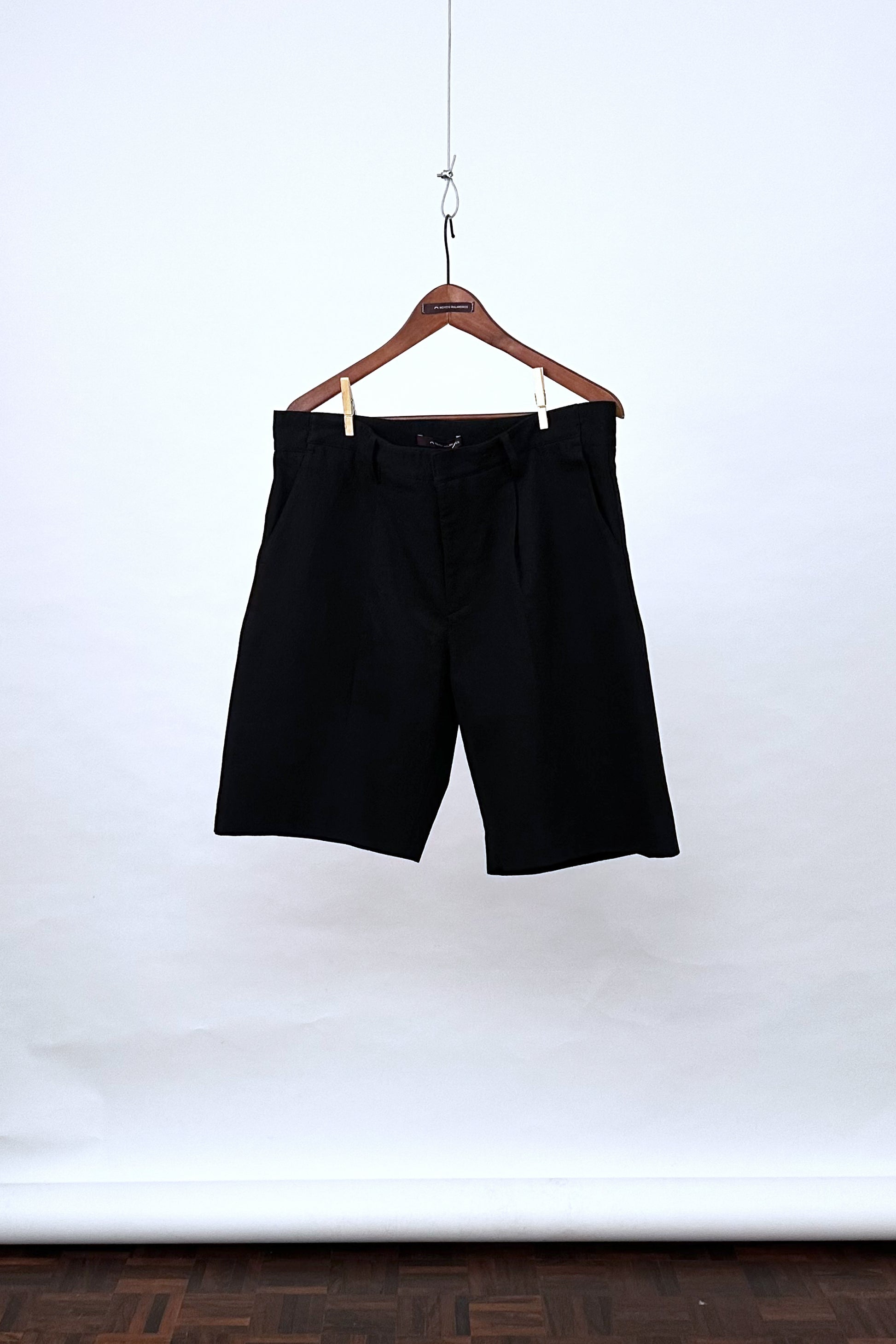 Calções com silhueta loose, frente com pregas e lateral sem costura. Frente com carcela clássica, bolsos diagonais e costas com bolso de um vivo.