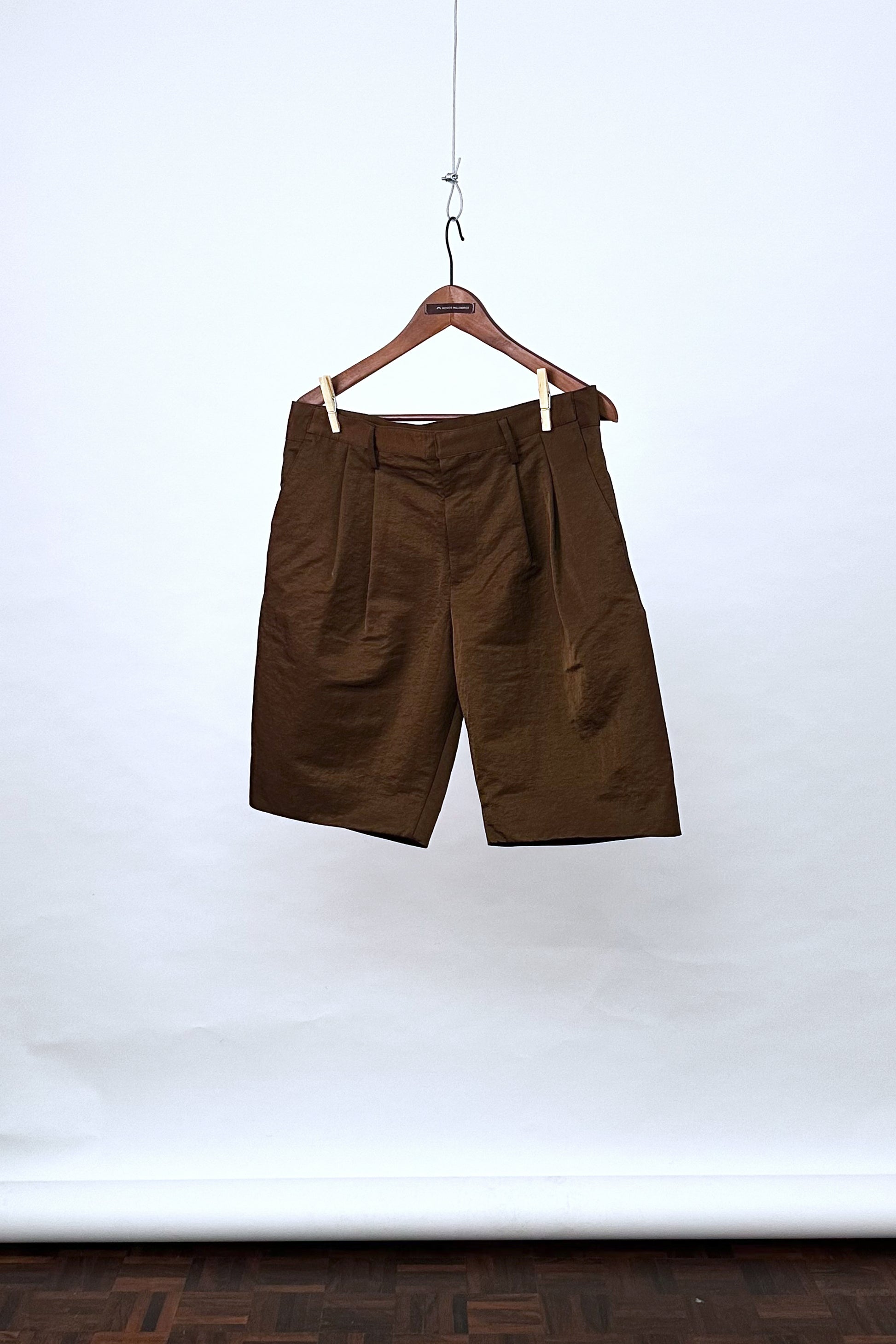 Calções com silhueta loose, frente com pregas e lateral sem costura. Frente com carcela clássica, bolsos diagonais e costas com bolso de um vivo.