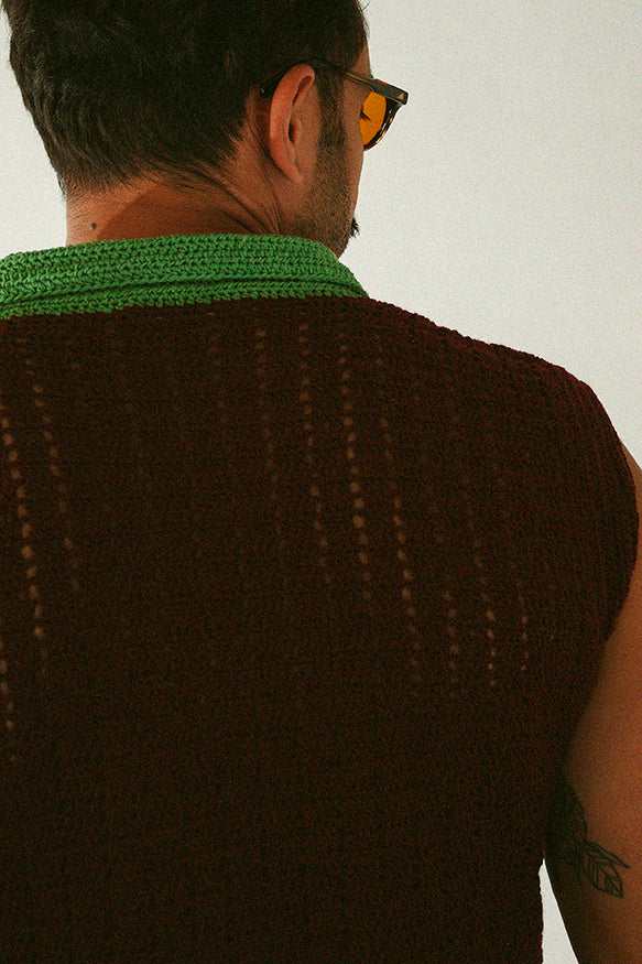 Top com silhueta relaxed. Gola estilo polo.