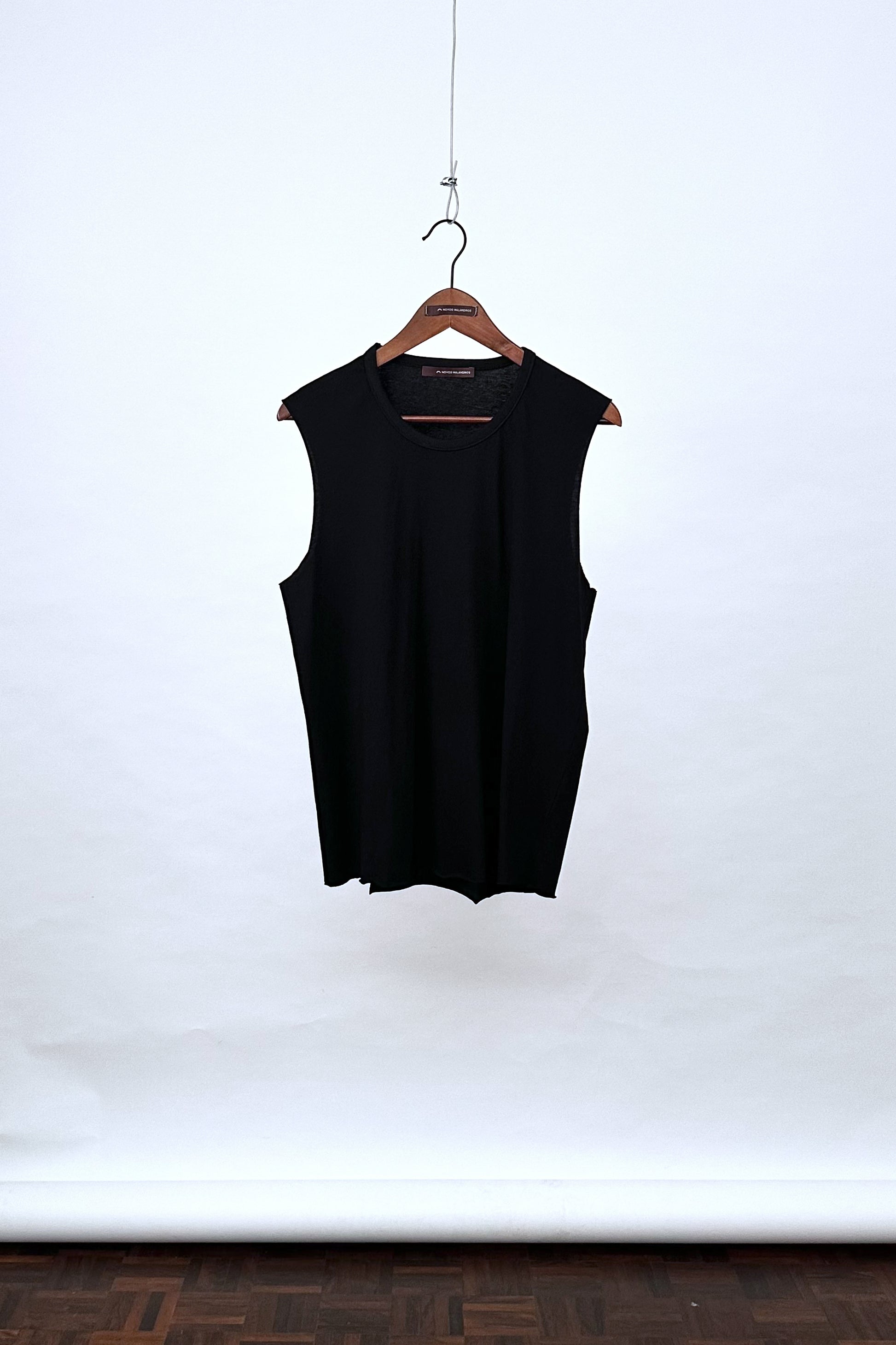 Top com silhueta loose, decote redondo fechado. Cavas e barra com acabamento a fio.